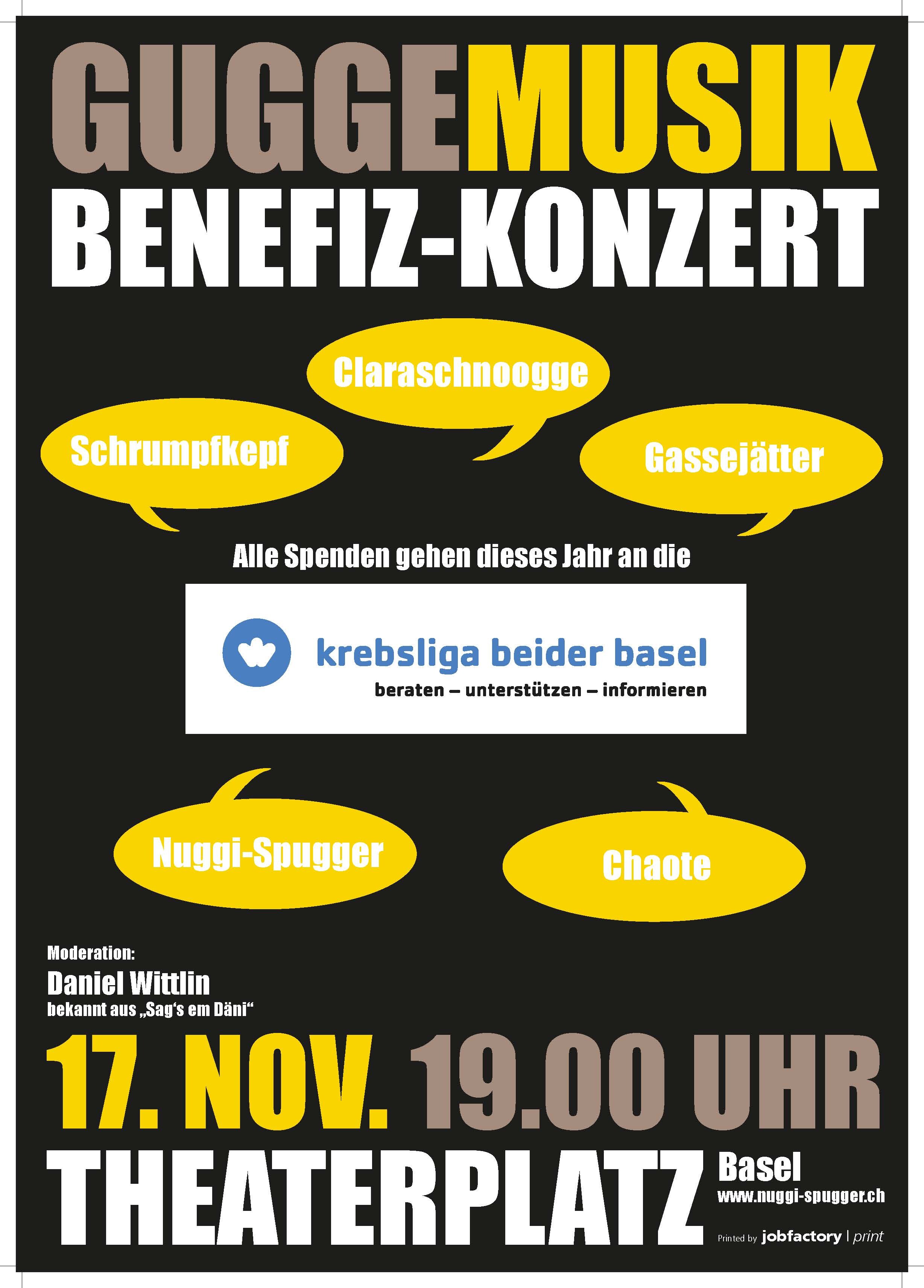 Am Montag, 17. November 2014 schränzen dort von 19:00 bis 21:30 Uhr über 150 Aktive der Basler Guggenmusiken Nuggi Spugger, Chaote, Claraschnoogge, Schrumpfkepf und Gassejätter für einen guten Zweck. Die Moderation übernimmt Daniel Wittlin («Sags em Däni»). Dank der Unterstützung vom Theater Basel kann der Anlass wieder auf dem Theaterplatz stattfinden. Der Hexenchessel (alte Fechthalle, Keller) wird an diesem Abend auch geöffnet sein und unterstützt die Nuggi Spugger mit Glühwein.