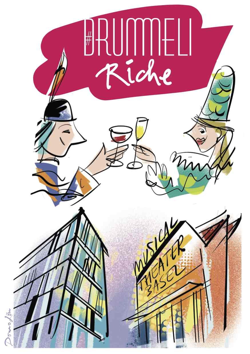 Das Angebot des Drummeli-Riche umfasst Willkommensgetränke Begrüssung durch ein Mitglied des Fasnachts-Comités und Transfer ins Musical Theater, Pause in der Drummeli Lounge, inkl Getränke und Käskiechli.