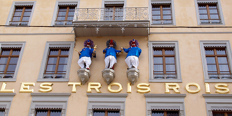 Seit dem Jahre 1754 thronen über dem Hauptportal des Grandhotel «Les Trois Rois» am Blumenrain die Statuen von Kaspar, Melchior und Balthasar. Diese werden seit nunmehr 40 Jahren durch die Wagenclique «Lufthyler-Waggis» am Donnerstag vor dem Morgestraich kostümiert. So werden aus den Königsfiguren die Drei Waggis Kaschper, Melchi und Balz. Eine Tradition, die inzwischen zum