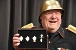 Die Plakette 2022 zeigt einen alt-gedienten Tambour-Major, bei welchem die allgegenwärtige Pandemie offensichtlich das Fasnachts-Kostüm etwas kleiner werden liess. Ein Umstand, den manche/r auch Nichtfasnächtler zur Kenntnis nehmen musste. Der Plakettenkünstler Kurt Walter verkörperte bei der Medienkonferenz seine Kreation gleich selber.