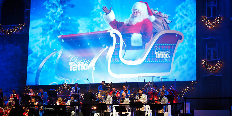 Die Kulisse des diesjährigen Christmas Tattoo versetzt den Besucher wiederum an den Basler Marktplatz zum Rathaus, welches mit vielen Tannenbäumen und Geschenkpäckchen festlich geschmückt für das weihnachtliche Ambiente sorgt. In der Arena tummeln sich geschäftige Marktbetreiber und ein überdimensionierter Davoser Schlitten bildet den Blickfang innerhalb dieser vorweihnachtlichen Szenerie.