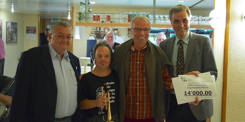 Trotz eines wiederum verregneten Sternmarsches der Basler Guggemusig Gmeinschaft (BGG) am Samstag, 1. September 2012, konnten die Kakaphonisten für die Schule für ungehinderte Musik (SFUM) einen stolzen Betrag sammeln. Die alljährliche Checkübergabe fand im Mohrenloch seine Durchführung.