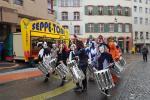 Nur kurz hatte Petrus die Fasnächtler geärgert. Zum Beginn des Cortège waren die Strassen abgetrocknet. Ein manchmal bunter, aber oft auch grau-schwarz düsterer Zug bewegte sich auf der Route, die ungewohnterweise nun auch durch den Claragraben führte. Vom dortigen Comité-Standort die nachfolgenden Eindrücke.