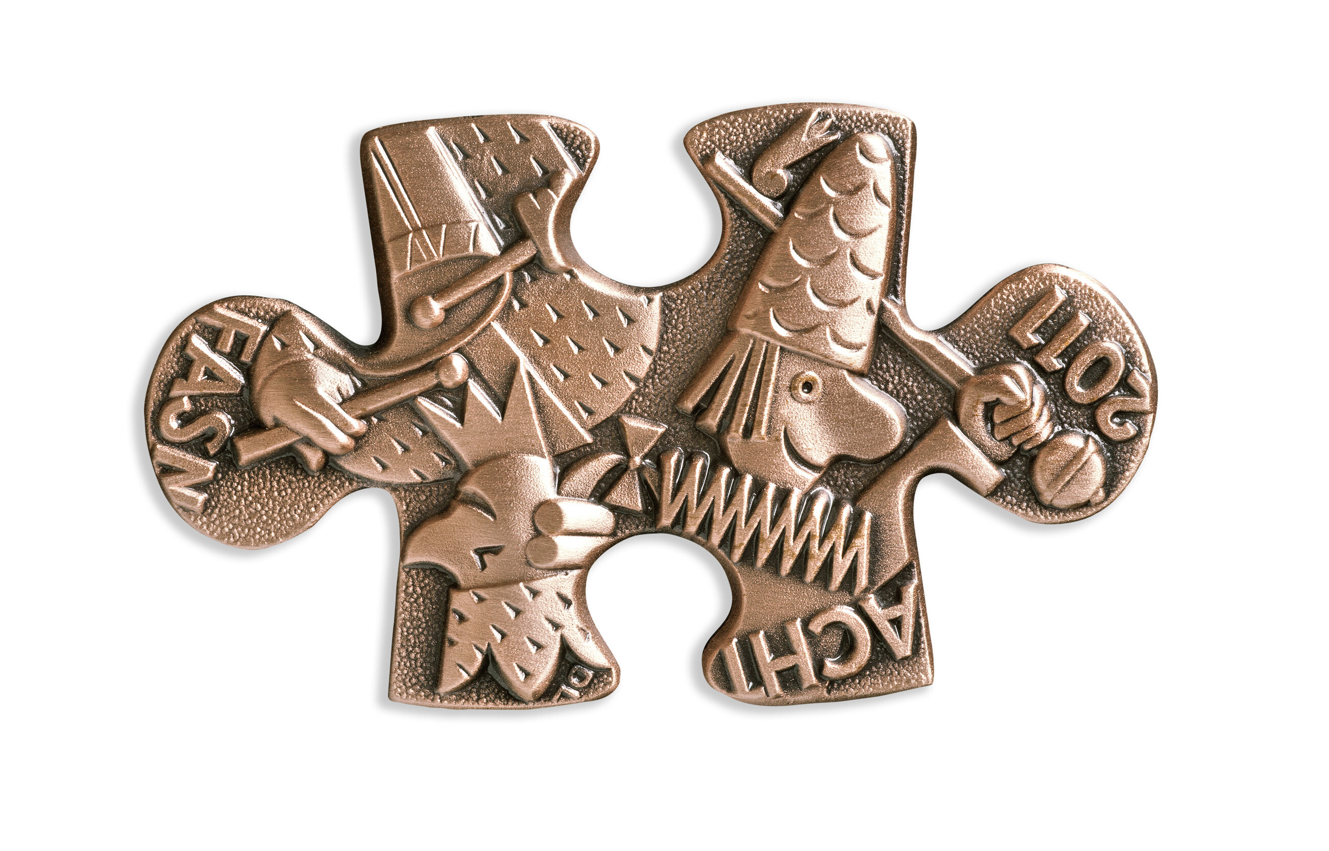 Das Schnitzelbank-Comité stellt heute seine Plakette für die Fasnacht 2011 vor: Das unverwechselbare Signet, der Baslerstab mit Zopf und Melone ziert einen Papiersack, eine „Gugge“. Deutet dies auf die witzige Verpackung von Pointen? Oder ist der Schnitzelbank ein Bhaltis für den Fasnächtler? Oder werden die Verse noch nicht aus dem Sack gelassen? Es gibt viele