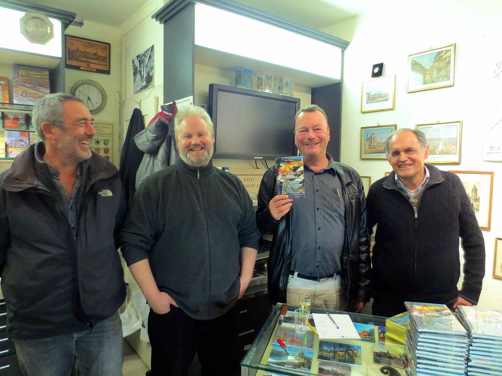 Die auf „Basler Fasnacht Online“ in loser Folge veröffentlichten „Hyylgschichte“ finden sich nun zwischen zwei Buchdeckeln. Dem Autor André Auderset (2. v. r.) ist mit dieser Sammlung von heiter-romantischen Fasnachtsgeschichten ein schöner Wurf gelungen. Das Buch unter dem Titel «Vo dr Liebi an dr Fasnacht» handelt von zwischenmenschlichen Geschehnissen, welche sich rund um „die drey scheenschte Dääg“ abspielen. Abgerundet wird das Werk durch die Illustrationen des bekannten „Blaggedde-Kinschtler“ Pascal Kottmann. Das Buch ist ab sofort auch im Tattoo-Shop an der Schneidergasse erhältlich.