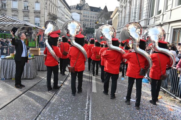 D Gugge am Määntig-Cortège mit abwäggsligryyche Sujets