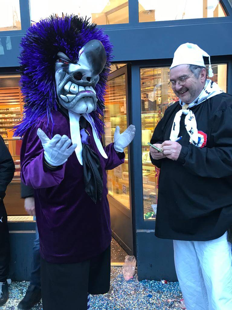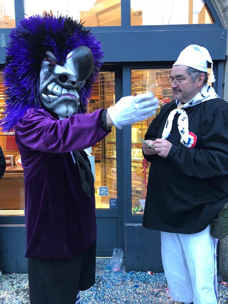 Waggis: Hesch e Stund Zyt (lacht)?I bi mit mine Kolleege vo dr Waggis-Clique, unsere Passivmitgliider und vorallem dääne ihrne Goofe mit eme Wäägeli duur d Stadt zooge und hänn e bitz Fasnacht gmacht. Kinder hänns dr Plausch gfunde.