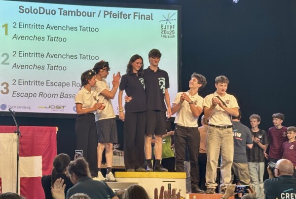 Das Eidgenössische Jungtambouren- und Pfeiferfest fand vom 19.-21. September 2025 in Lenzburg statt. Es wurden zahlreiche neue Eidgenossinnen und Eidgenossen unter den über 1’200 Teilnehmenden gekürt. Und an den Basler Piccolovirtuosinnen kommt keiner vorbei.