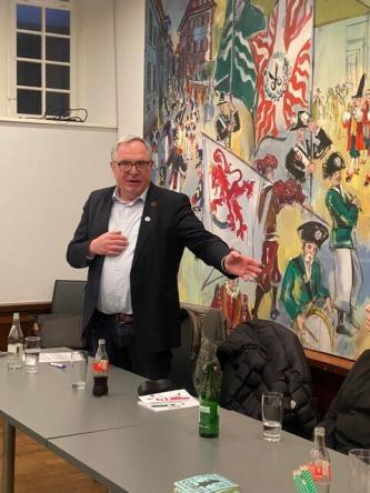 Vernetzen, Austauschen und handfeste Tipps geben – um das geht es beim zwanglosen «Schnupperbangg». Altmeister/innen und Grünschnäbel vereint, wurde über die hohe Verskunst philosophiert und die Bank-Leidenschaft zelebriert. Ein Helgenmaler wurde vermittelt, eine Örgelibegleitung gesucht und die besten Larvenmacher empfohlen. Das Schnitzelbank Comité freut sich sehr über den grossen Ansturm und die Nachwuchstalente, von denen bereits an der Fasnacht 2024 etliche angetroffen werden konnten. Auch 2025, so hält Obmann Edi Etter (Bild) stolz fest, «wird ein Spitzenjahr!».