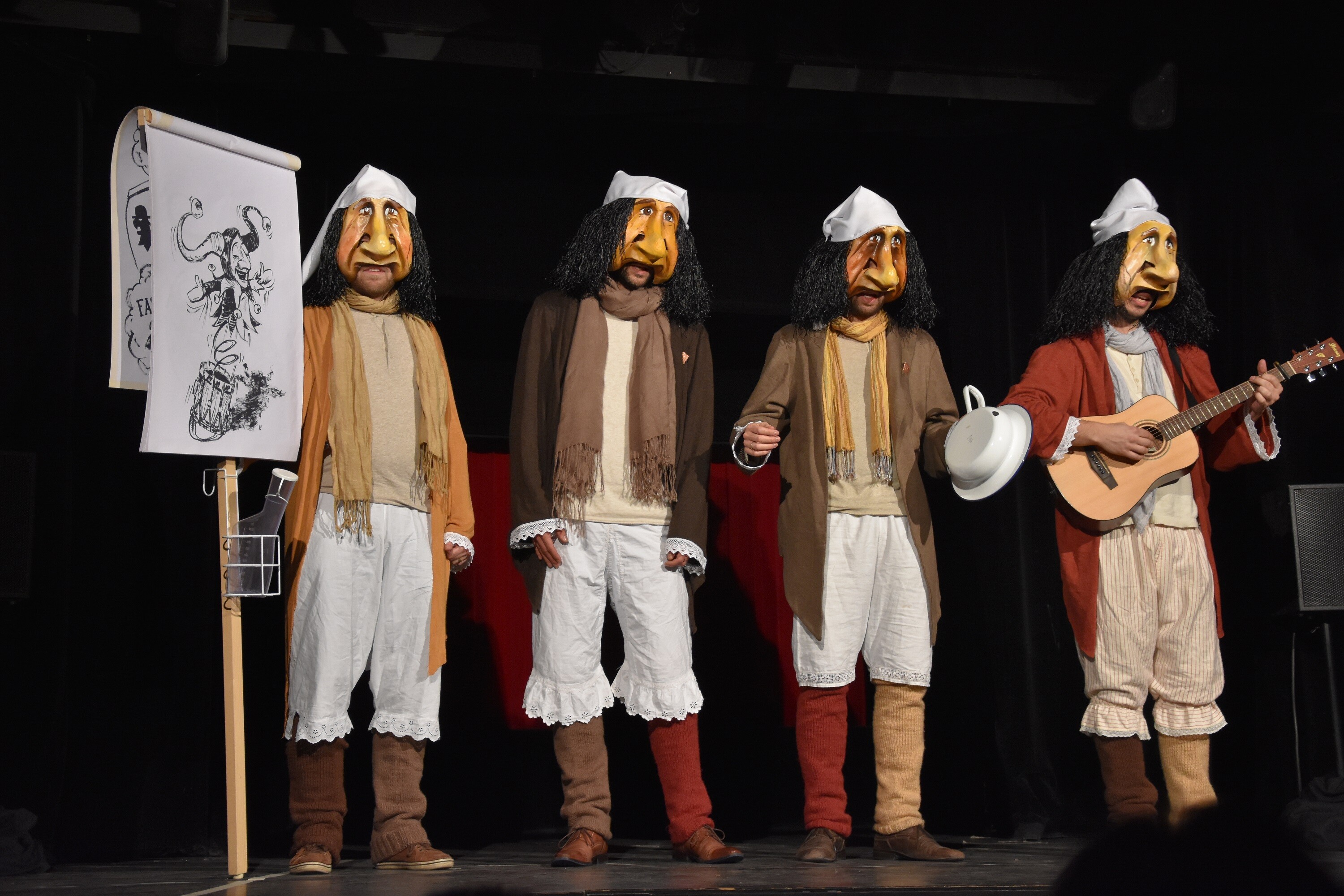 Sehr dosiert gibt es auch Fasnachtsmusik, dafür aber in hoher Qualität. Speziell gefallen hat ein Meadley aus Krimi-Melodien, gepfiffen von der Pfeifergruppe Ego-Säu, visuell hervorragend untermalt von Puppen-Szenen. Ein Reisser auch das „Duell“ zwischen einem Tambour und einer gleich angezogenen Puppe. Und im zweiten Teil gefiel ein – wenn auch zu Beginn etwas zaghaft getrommelter – „Ungar“ (Pfeifertext Cornelius Buser, Trommeltext Patrick Hersberger).