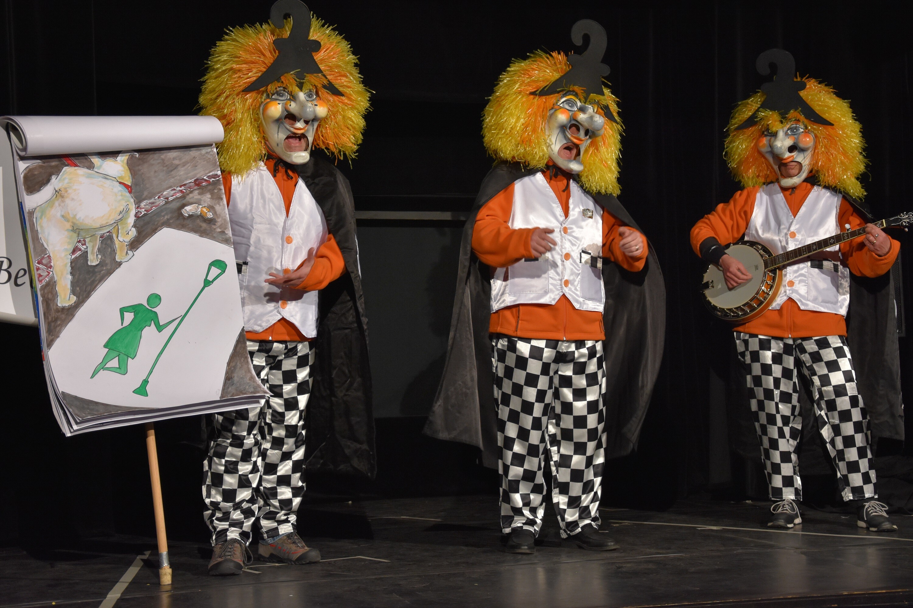 Traditionell nützt eine Reihe von BSG-Bänken den Källerstraich zum Ausprobieren ihrer Verse; an der Vorpremiere waren dies die „Giftspritzi“ (tolle Hingis-Imitation), die Unerheerte, die Bebbi-Buebe (nach Pause wieder zurück) und die Rätschbääse, die Mühe mit dem Helgeständer, nicht aber mit ihren Pointen hatten. Jetzt wissen wir endlich, was es mit den überall auftauchenden Horror-Clowns auf sich hat: Es ist Frau Canepa mit ihrem FCZ auf NLB-Tour.
