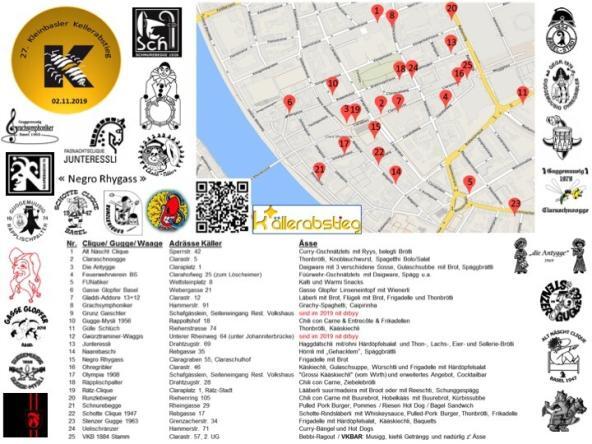 Der Kleinbasler Kellerabstieg findet am 2. November 2019 statt. Die teilnehmenden Keller sind aus der hier beigefügten Karte entnehmbar (zum Vergrössern anklicken).