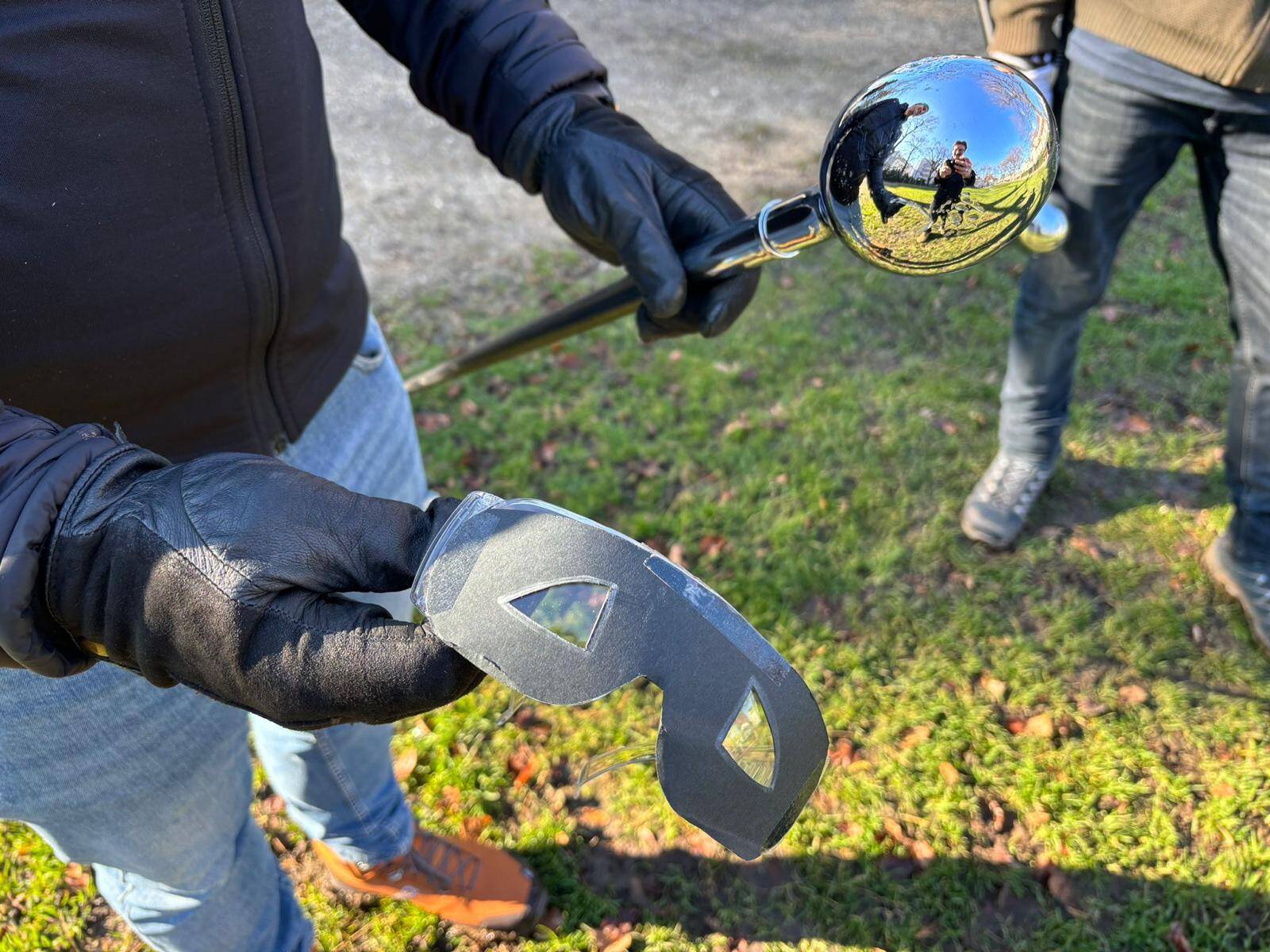 Das Geheimnis der Halblaarve und der Sonnenbrille: Das sind Instrumente um die Sicht so einzuschränken, wie sie dann auch an der Fasnacht eingeschränkt werden wird. Coole Idee. Vielleicht überlegen sich diese Majoren auch noch, wie man eine „Druggedde“, die den Major an der Fasnacht ja auch beeinträchtigen wird, simulieren will…