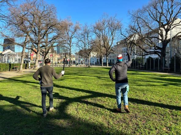 Auf Nachfrage stellt sich heraus, dass dies ein Teil einer Tambourmajoren-Gruppe ist – bestehend aus den Majoren der Giftschnaigge, Dupf-Club und Barbara-Clique – die allsonntäglich ein Wink- und Marschtraining im Wettsteinpark absolvieren. Und zwar ohne Clique! Jogger und Velofahrende kommen ihnen nicht in den Weg und die AnwohnerInnen haben auch kein Problem mit dieser Art „Marschübung“.