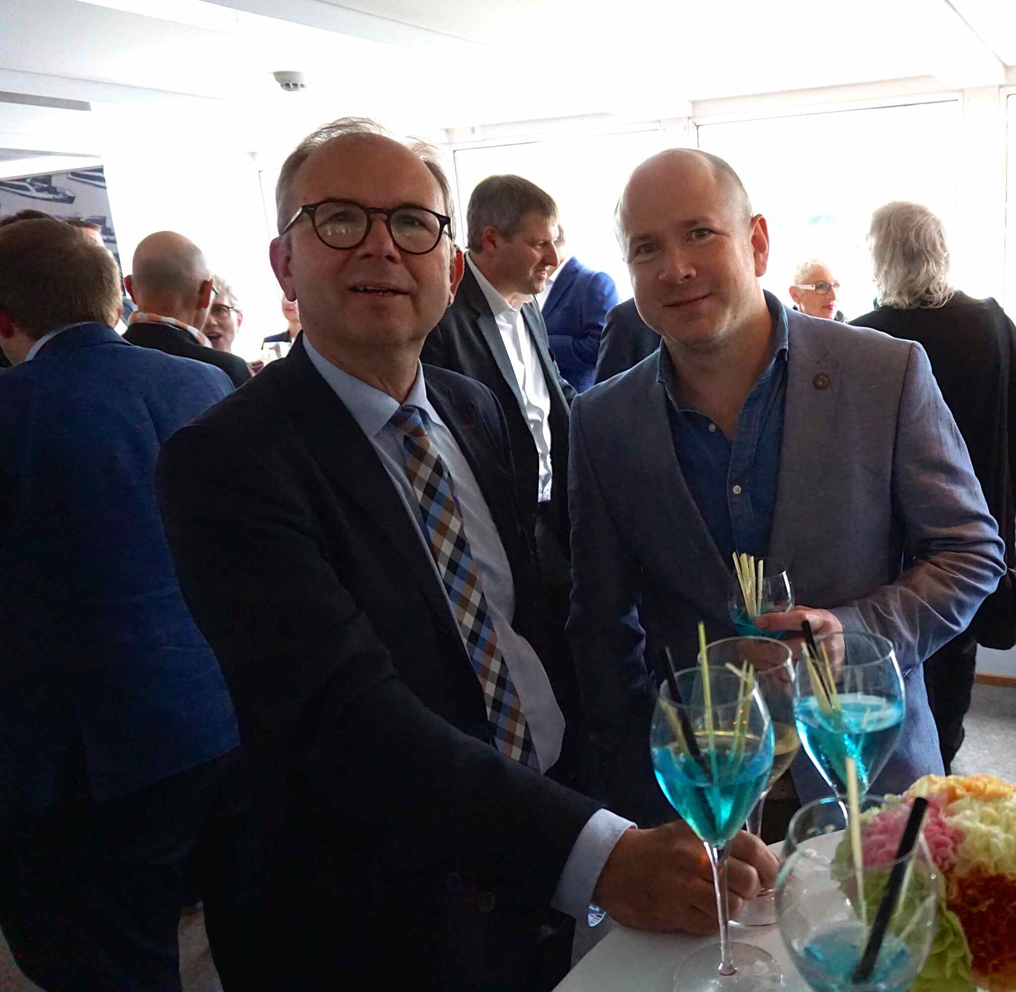 An der Taufe des neuen BPG-Schiffes am 16.5. wurde auch der Obmaa des Fasnachts-Comités, Christoph Bürgin (links im Bild), unter den geladenen Ehrengästen gesichtet. Der Grund erstaunt: Fasnacht.ch fand heraus, dass der oberste Basler Fasnächtler tatsächlich bei der Gestaltung der künstlerischen Innenausstattung des Schiffes MS RHYSTÄRN als Berater angefragt worden ist. Heisst das nun, dass die Passagiere auf dem Schiff mit Trommel- und Pfyfferkläng willkommen geheissen werden? «Nein», so ein Insider aus der BPG, «die BPG wünschte sich ein Schiff, in welchem man spürt, dass es mit BASEL eng verbunden ist. So wurden einige Menschen, die einen starken Bezug zur Stadt haben, angefragt, ob sie bei der Gestaltung mithelfen mögen. Unter der Leitung eines Innendesigners hat Christoph Bürgin seine Ideen in die Gruppe eingebracht und hätte man es nicht gewusst, wäre einem sein Bezug zur Fasnacht gar nicht aufgefallen. Also kein Piccolo, keine Trommel und keine Räppli-Motive, aber viel Basel in Text und Bild!» Das Publikum kann sich von der Arbeit der Kreativ-Gruppe erstmals am 16. Juni 2018 persönlich ein Bild machen. Dann nämlich findet ein «Tag der offenen Türe» auf dem «Rhystärn» statt. Infos auf bpg.ch.