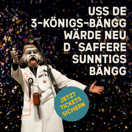 Aus den 3 Königs-Bängg werden neu die Saffere-Sunntigs-Bängg – und diese treten am Sonntag vor der Fasnacht in der Safran-Zunft Basel auf. Gleich bleibt der Preis für das «feuchte» Gedeck und den Bank-Genuss.