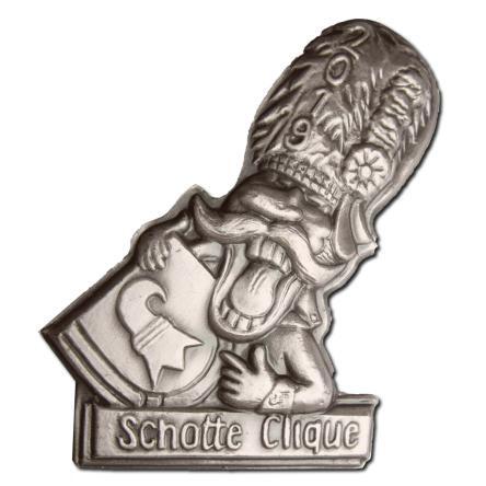 Die Mitglieder der Schotte-Clique 1947 (die man ja nicht als Gugge bezeichnen soll!) müssen derzeit viel erklären, wenn sie die traditionelle Plakette an Mann oder Frau bringen wollen. „Nein, der Baslerstab drauf ist nicht verkehrt rum“, dürfte dabei der meist verwendete Erklär-Satz sein. Es handelt sich nämlich nicht um ein Druck-Versehen, sondern um eine so gewollte Darstellung. Gezeigt wird das Kleinbasler Wappen – und da schaut der Baslerstab halt nach rechts.