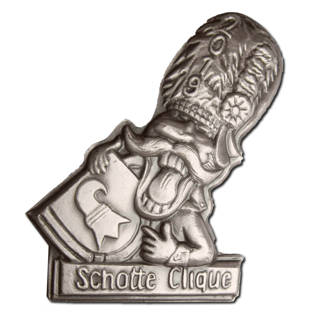 Die diesjährige Plakette der Schotten-Clique steht ganz im Zeichen des Kleinbasels. Sie zeigt das Kleinbasler Wappen und die charakteristische Bärenfellmütze. Das Ganze steht im Zeichen des Sujets „Mir kämpfe fyrs Glaibasel“. Mehr dazu gibt es auf einem in Facebook veröffentlichen Video.