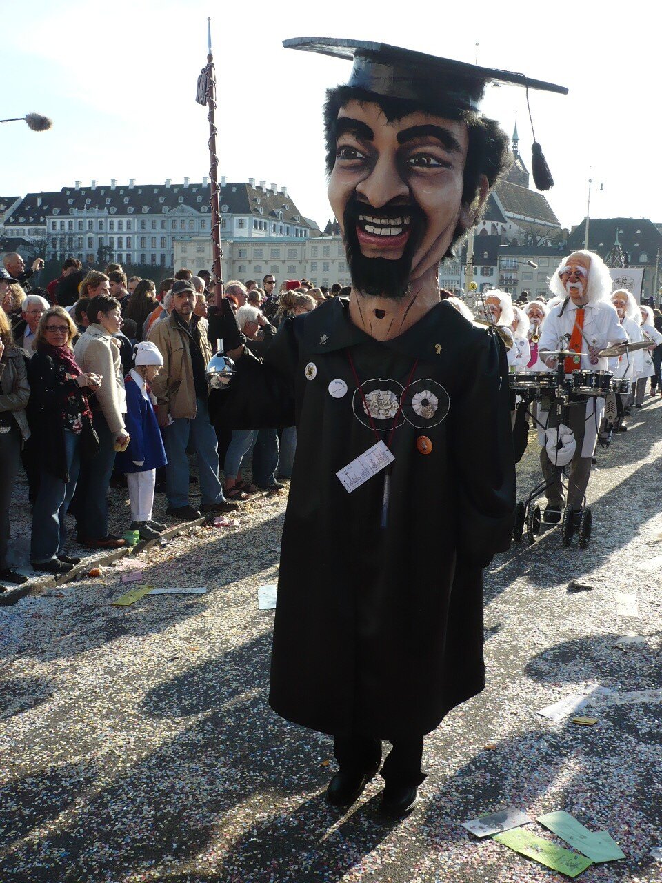 Übrigends: «– Ein Tambourmajor grüsst, er verneigt sich aber nicht. Dazu ist er zu stolz. – Manchmal kommt es sogar vor, dass ich ausnahmsweise einen Guggemajor grüsse. Aber nur wenn ich ihn persönlich kenne oder er mich zuerst grüsst. – Seit wenigen Jahren „verbietet“ das Drummeli-Comité den Tambourmajoren das Grüssen des Publikums am Drummeli bevor die Darbietung der Clique losgeht. Wenn der Marsch vorbei ist, „darf“ man aber nach wie vor soviel grüssen, wie man möchte. Begründet wurde das mit dem reibungsloseren und unterbruchfreierem Ablauf der Show, was ich ja irgendwie nachvollziehen kann. Aber mir wäre es lieber gewesen, darum gebeten zu werden. Weil mit Verboten habe ich, besonders an der Fasnacht, ziemlich Mühe.»